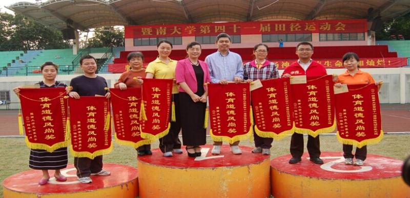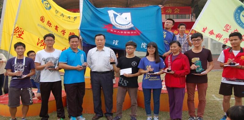 22日下午,举行了本届运动会的颁奖仪式。两天半的激烈角逐,展现了暨南师生蓬勃向上、顽强拼搏的精神风貌。学校陆大祥副校长、饶敏副校长出席,并为本届运动会的获奖单位颁奖。