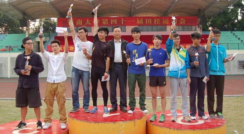 (陆大祥副校长给学生男子总分前八名颁奖)