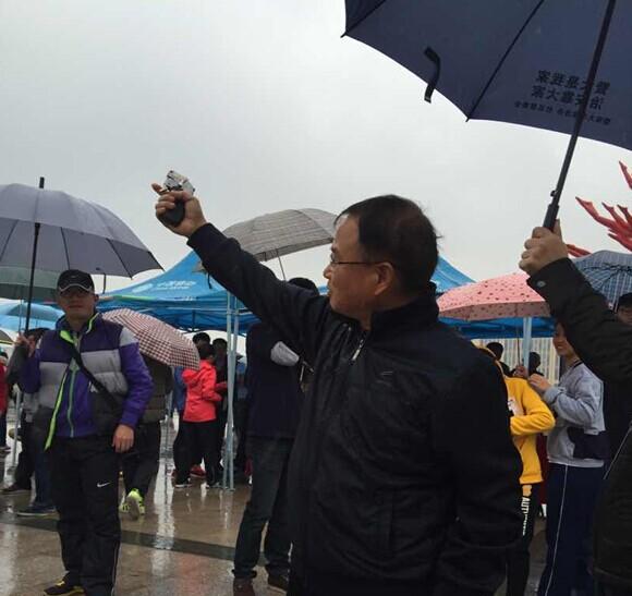 下午三点,比赛在南校区准时开跑,随着现场的气氛越来越热烈,天空的雨也越下越大,许多同学撑伞来到现场观看比赛,为自己的代表队加油助阵。