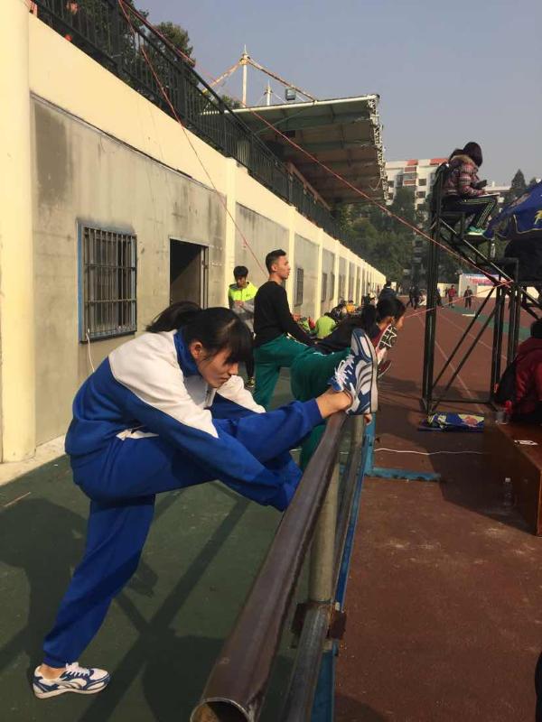 田径专业考生在进行考前热身