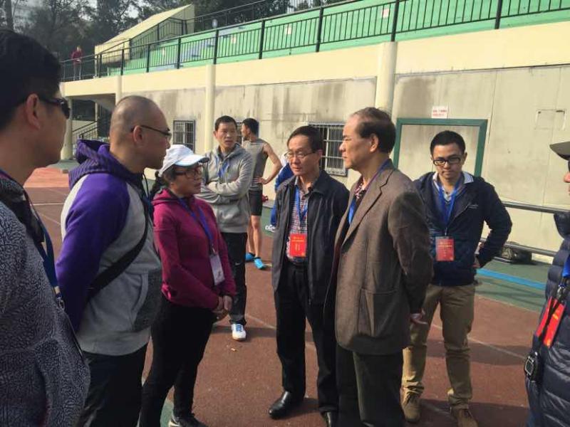 庄友明主任与田径组长麦雪萍教授现场处理问题