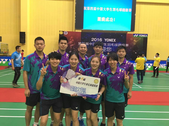 5月28日至29日,由中国大学生体育协会主办的“第四届中国大学生羽毛球超级赛”在抚顺辽宁石油化工大学举行,共有来自北京大学、暨南大学等14所大学的173名全国各院校高水平运动员参赛,我校派出了由8名运动员组成的高水平运动员队伍,在两天的比赛中过关斩将,在小组循环赛中以第二名成绩出线,获得混合团体第五名的成绩。