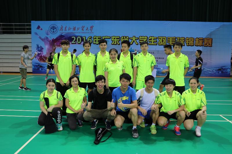 5月26日,由广东省学生体育艺术联合会主办“2016年广东省大学生羽毛球锦标赛”在广东外语外贸大学举行,来自67所大学的879个领队教练员和运动员参加了本次大赛,我校羽毛球队取得乙B组男单女双冠军、男双女单第三名、男单第四名,乙A组男单第四名和混双第七名,以精湛的技术和优良的赛风斩获乙B组团体总分第一名的好成绩。