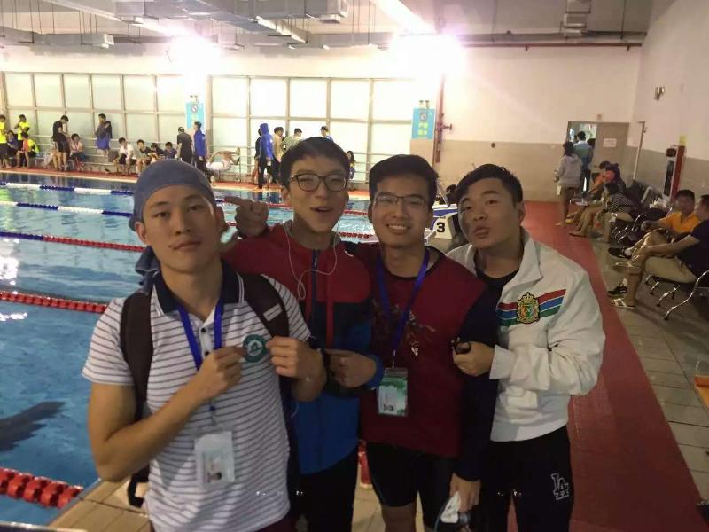 张翔管理学院12级市场营销专业、王越尧公共管理/应急管理学院13级应急管理专业、阙士雄公共管理/应急管理学院13级公共事业管理专业、陈翼豪新闻传播学院13级广告学专业夺得男子甲组4*50米混合泳接力第一和4*50米自由泳接力第二。