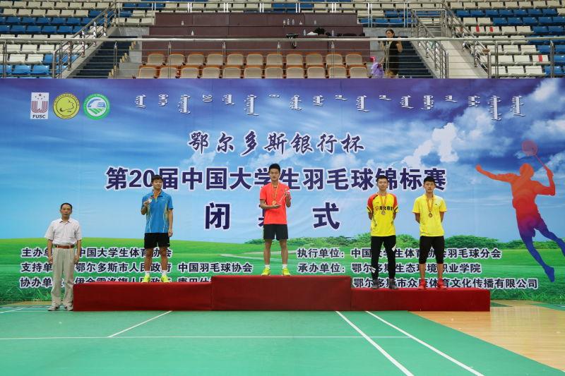 第二十届中国大学生羽毛球锦标赛于2016年8月6日至11日在内蒙古鄂尔多斯举行,在为期六天的比赛里,来自全国100多所高校及教育厅代表队的806名男女运动员展开了激烈的角逐,我校羽毛球队运动员敢打敢拼,发挥出色,充分展现出暨大学子奋勇向前的风采,其中宋冉升同学更是在击败亚洲青年羽毛球锦标赛男单冠军孙飞翔等一众强敌后夺得乙组男子单打银牌的骄人成绩。