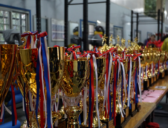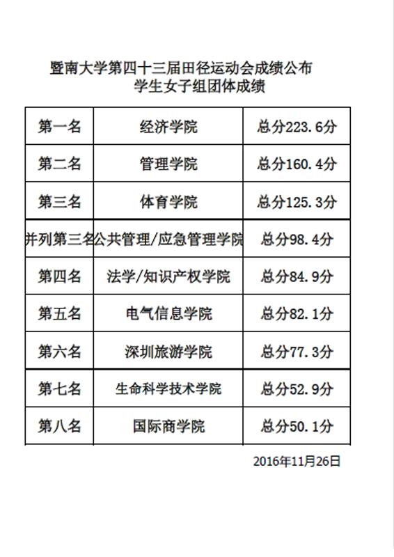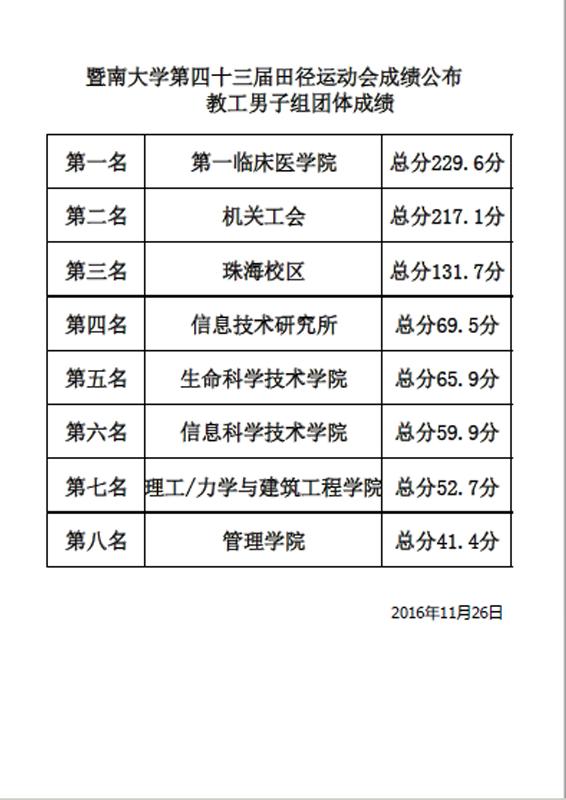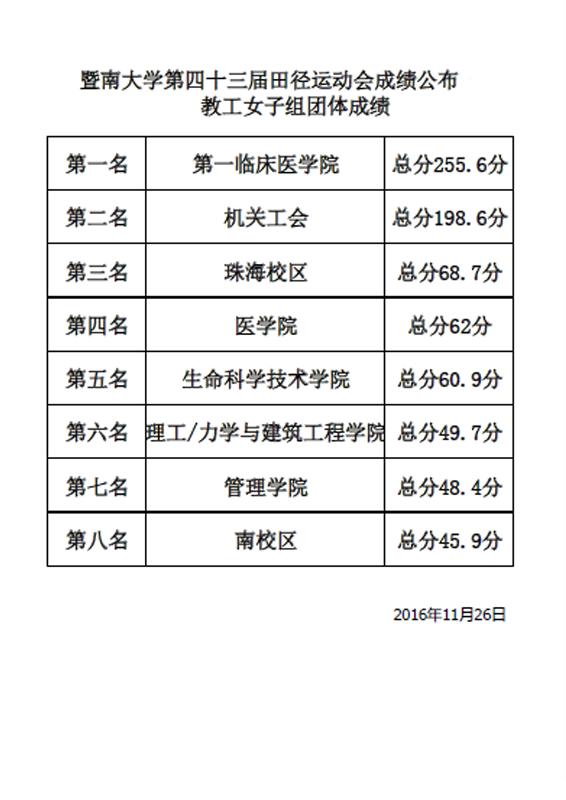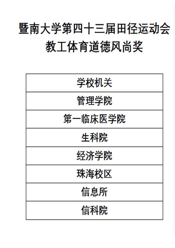 11月26日下午5:00,我校第四十三届田径运动会胜利闭幕!因大雨原因,原定的在学校田径场举行了颁奖仪式临时被迫取消。全校共有2109名运动员参赛,组成了32支代表队,经两天半的激烈角逐,共产生了48个集体奖项, 354 个人奖项。