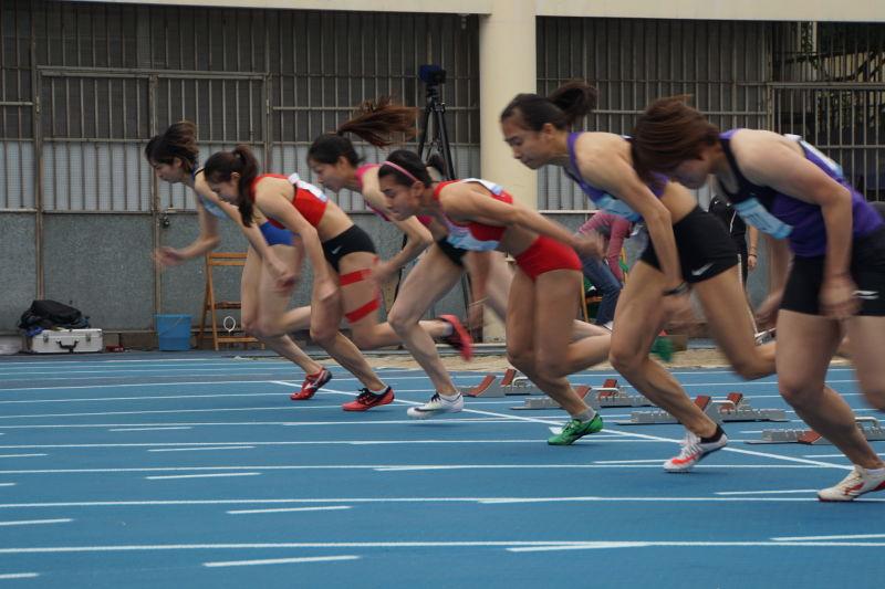 女子100米起跑