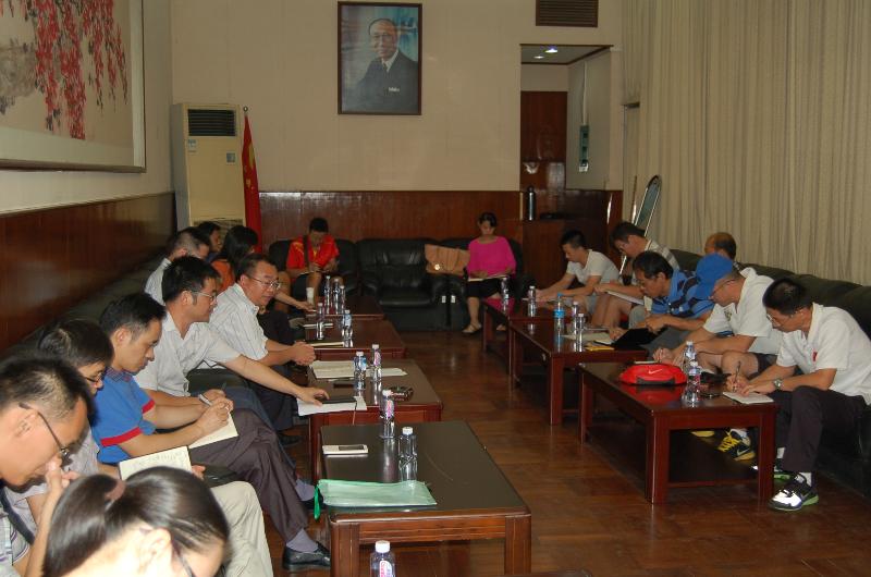 96日下午330,在邵逸夫体育馆贵宾室举行高水平大学建设工作调研工作会议,暨南大学副校长张荣华教授率财务与国有资产管理处丁有刚处长、招生办庄友明主任、发展规划处孙清忠副处长、基建处黄玉珑副处长、人力资源开发与管理处郑婕慧副处长、研究生院熊卫华副院长、教务处张晓宁副处长、社科处黄晓燕副处长等一行11人到体育学院(筹)调研。
