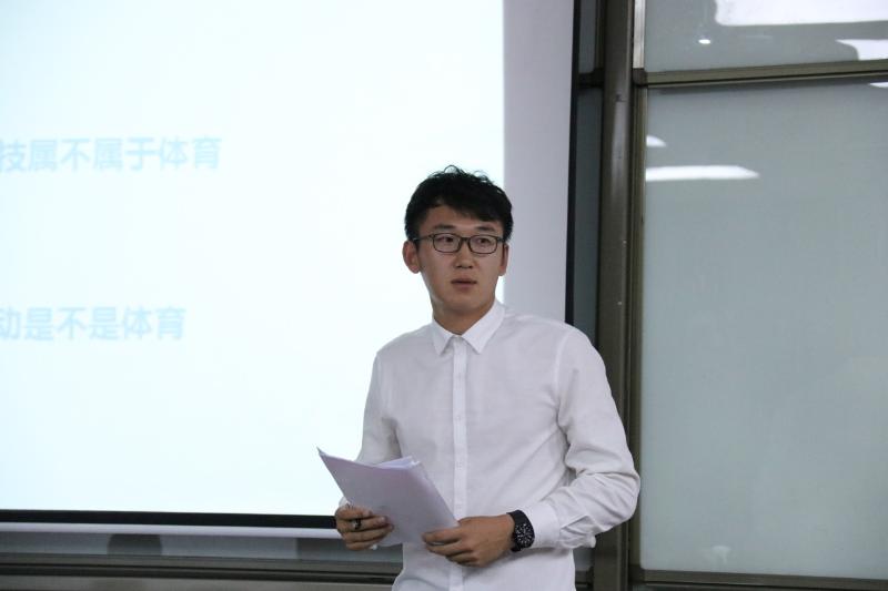 学院分管教学副院长刘上行副教授致辞,他指出本次教学竞赛要以锤炼青年教师教学基本功,加强师德师风建设为着力点,充分发挥教学竞赛在提高教师队伍素质中的引领示范作用,以赛促教,打造创新型体育课堂。