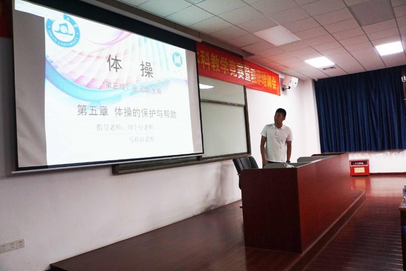 2018年11月8日晚上,为了备战暨南大学关于举办第五届本科课程新任教师教学竞赛,体育学院教科办组织举行2018年新任教师本科教学竞赛暨教学培训会。本次学院共有6名新任教师参加了教学竞赛,特邀学院院长徐泽教授、党支部书记李淑芬教授、副院长彭国雄教授、副院长刘上行副教授、教科办主任潘冬教授、麦雪萍教授、黄智武副教授、马祥房副教授为本次竞赛及培训会出任评委会及培训工作专家。活动由梁枢老师主持,45名体育教育本科专业生观摩了比赛。