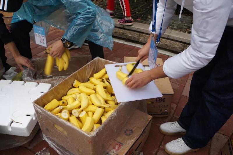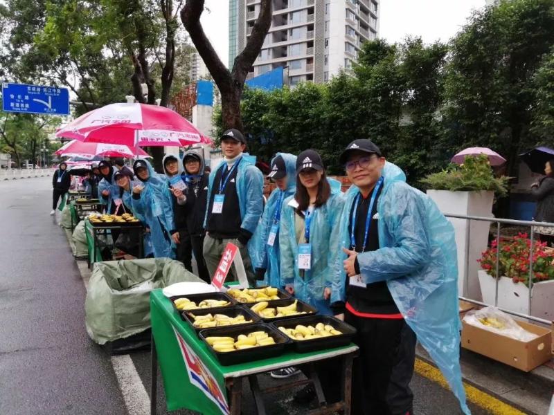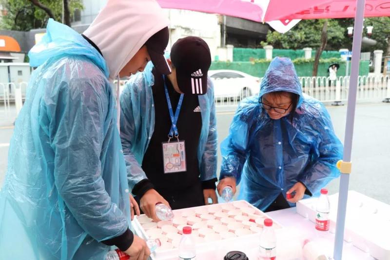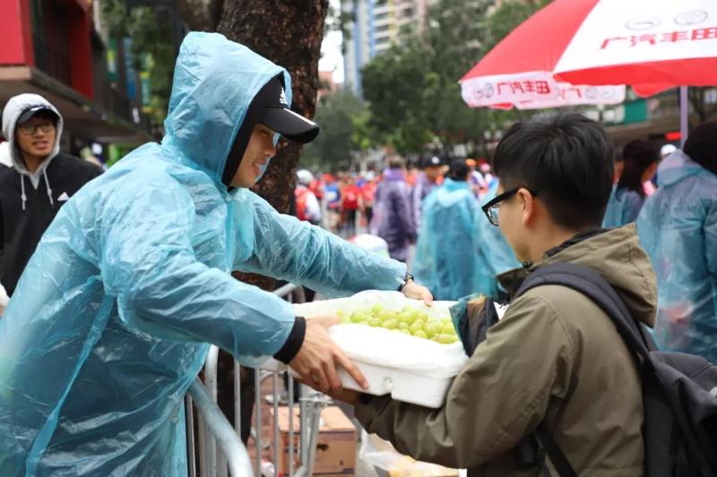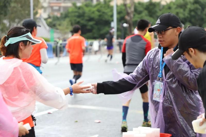 2018年12月9日7:30,2018广州马拉松赛正式开枪起跑。暨南大学团委青年志愿者协会和体育学院共同组建了“暨体同心”志愿服务团队,承担了广马27.5公里处饮水用水站和食品补给站两个岗位的志愿服务工作。尽管首次参与广马志愿服务工作,从风雨寒凉的凌晨5:12到11:30赛道关门,100名志愿者和带队老师龙欣一起坚守岗位,兢兢业业,同去同归,用他们的热情和行动向广马全体工作人员、运动员和所有关注广马的人们展现了“忠信笃敬”的暨南精神,也为自己的大学生涯留下了最美好的一副画卷。