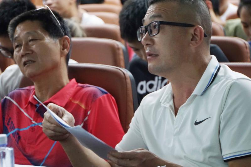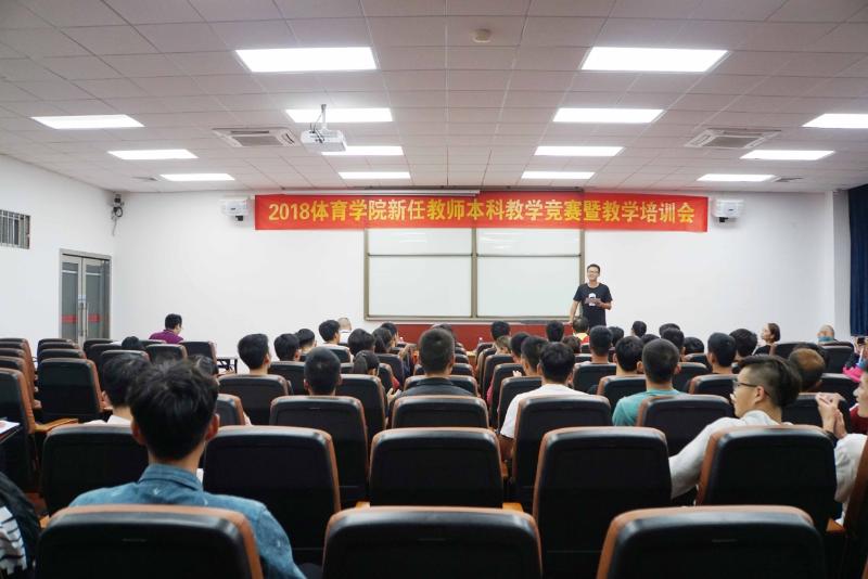 2018年11月8日晚上,为了备战暨南大学关于举办第五届本科课程新任教师教学竞赛,体育学院教科办组织举行2018年新任教师本科教学竞赛暨教学培训会。本次学院共有6名新任教师参加了教学竞赛,特邀学院院长徐泽教授、党支部书记李淑芬教授、副院长彭国雄教授、副院长刘上行副教授、教科办主任潘冬教授、麦雪萍教授、黄智武副教授、马祥房副教授为本次竞赛及培训会出任评委会及培训工作专家。活动由梁枢老师主持,45名体育教育本科专业生观摩了比赛。