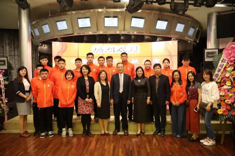 (中国侨联主席万立骏与出访团师生合影)