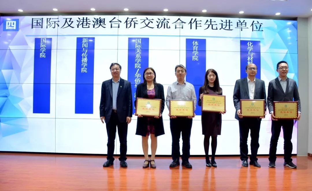 在过去的一年里,暨南大学认真贯彻落实习近平总书记视察我校重要讲话精神,坚持“侨校+名校”发展战略,擦亮“暨南”金字招牌,主动服务国家重大需求和社会经济发展需要,推进落实“粤港澳大湾区发展规划纲要”工作,统筹世界水平和中国特色两个维度,专班学内涵建设,全面提升学校综合实力和国内外影响力。我院在学校国际化建设方面,积极做出贡献,被评为“2019年暨南大学国际及港澳台交流合作先进单位”。