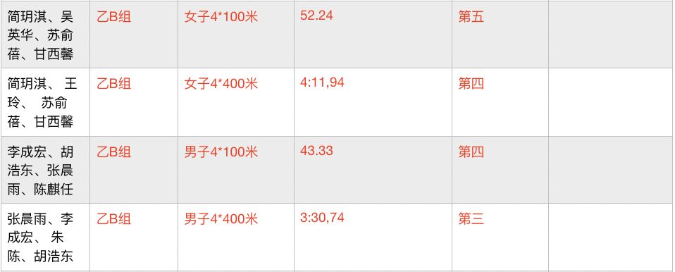 乙B组女子4*400接力赛获第四名