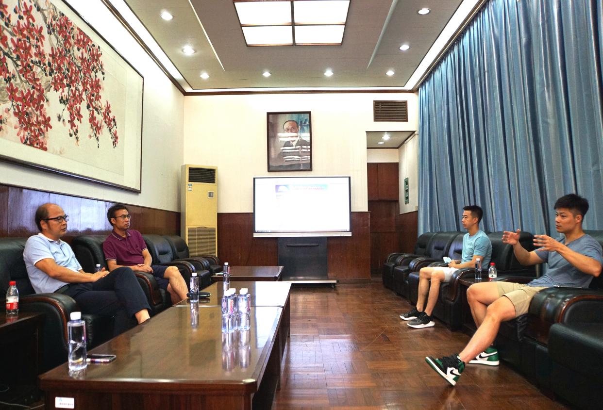 7月28日上午,一场小型座谈会在邵逸夫体育馆一楼贵宾室举行,体育学院副教授苏炳添在备战奥运会训练之余回到学院,同学院领导和教师代表汇报交流2020年上半年的工作和训练情况,为学院网站建设和学院发展献计献策。座谈会由彭国雄院长主持,党总支程斌书记、潘冬副院长和教师代表参加了座谈会。