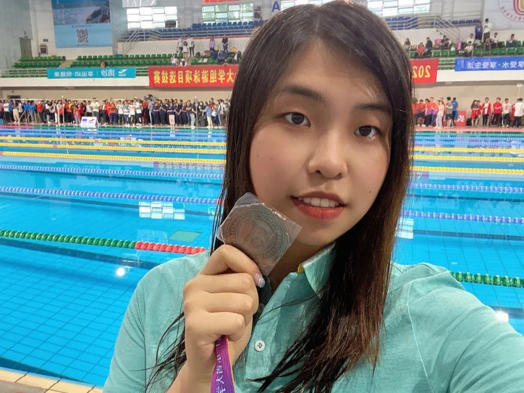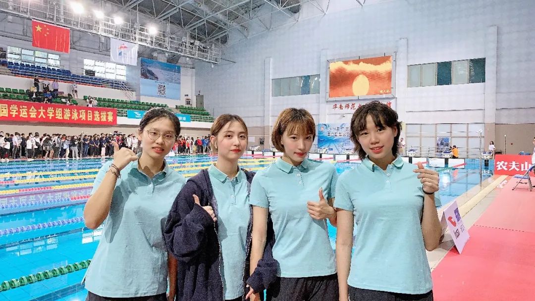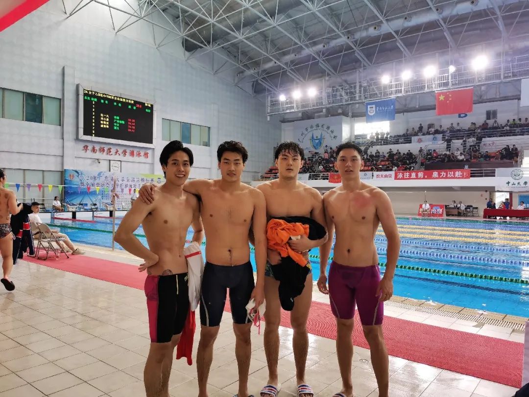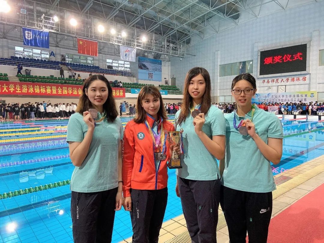 本次比赛游泳队取得了许多优异的成绩,其中18级体育教育专业本科生付世明代表我校夺得高校男子乙A组50米自由泳冠军、50米蝶泳亚军;19级体育学院体育教育专业研究生陈诗铭夺得高校女子乙B组50米仰泳亚军、100米仰泳季军;由杜洋乐然、张庭栋、刘冠辰、李宜滨四名学生组成的接力队伍勇夺乙B组4*100米自由泳接力亚军等等。