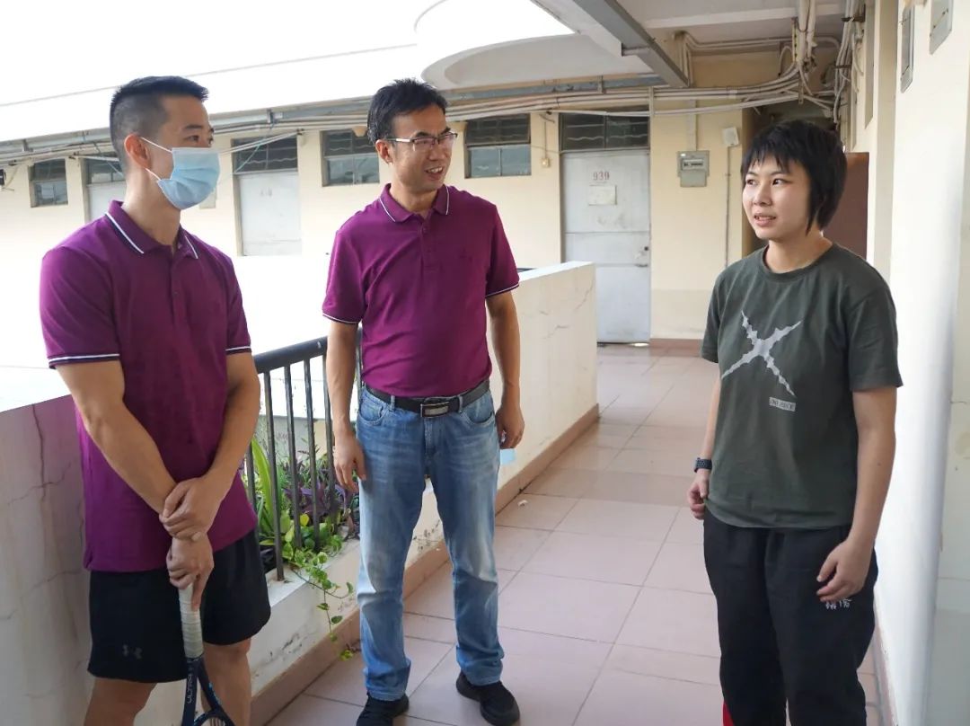 体育学院党总支程斌书记(中)、潘冬副院长(左)