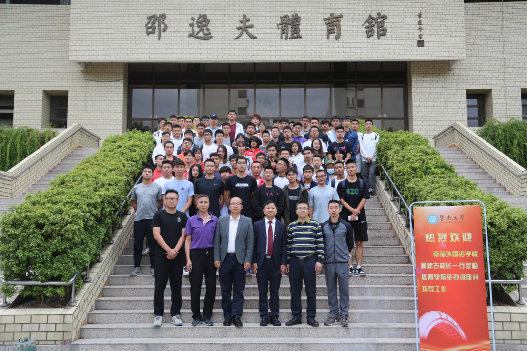 10月22日,佛山市南海外国语学校校长黄新古、南海桂城教育局副局长刘敏聪受邀访问暨南大学体育学院,与体育学院院长彭国雄、党总支书记程斌、副院长潘冬、教务办主任梁枢以及实习基地主任潘民展开亲切会谈,就2021届毕业生实习、就业等问题展开深入讨论。彭国雄院长对佛山市南海区桂城教育局、以及南海外国语学校一直以来的支持表达感谢,双方就未来深入合作达成共识。