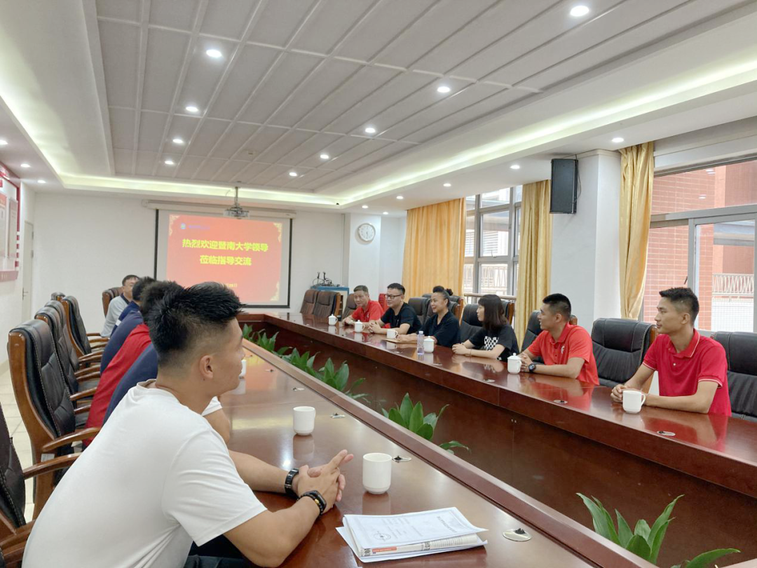 南海外国语学校安全主任兼体育科组长叶永明与万文君主任、胡玉娜主任、曾泳老师深入研讨,就未来具体的合作协同方式、《教学实习基地管理考核办法》的制定等事宜展开操作性层面上的磋商,为深化后续合作奠定基础。暨南大学毕业生校友,南海外国语学校骨干体育教师朱喆、金向阳和王长鑫各自表达了对母校培养的深切感谢,更期待能够做好传、帮、带工作,为暨大体院师弟、师妹们的成长发展贡献一份力量。