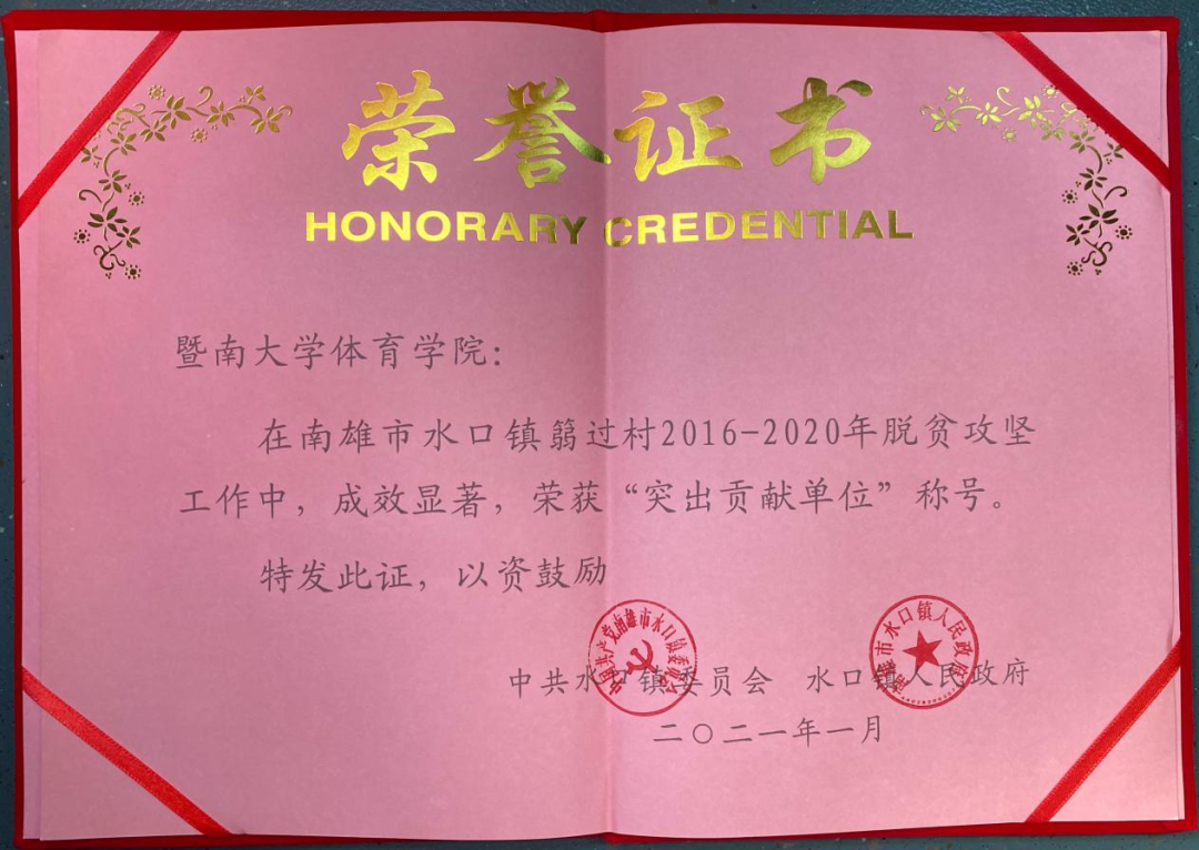 为贯彻落实广东省委、省政府关于开展好脱贫攻坚工作部署,扎实推进脱贫攻坚工作,我校于1月13日由孙彧副书记带队,组织学校各帮扶单位领导和教职工代表,前往篛过村开展新春扶贫慰问活动,体育学院张鹏老师代表学院党总支参加。本次活动分为精准扶贫入户走访慰问,篛过村功德碑揭碑和脱贫攻坚突出贡献单位证书颁发仪式,《广东南雄水口战役研究》捐赠仪式及参观水口战役陈列馆三项,体育学院荣获“突出贡献单位”称号。