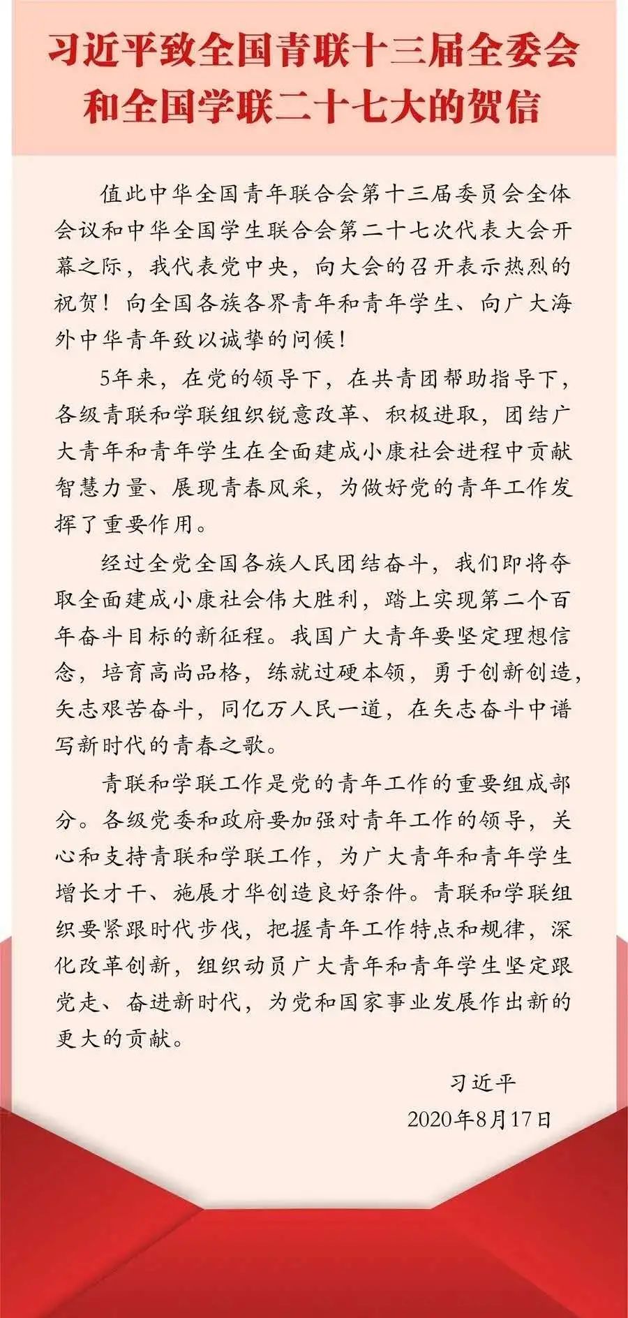 8月17日上午,中华全国青年联合会第十三届委员会全体会议在京开幕