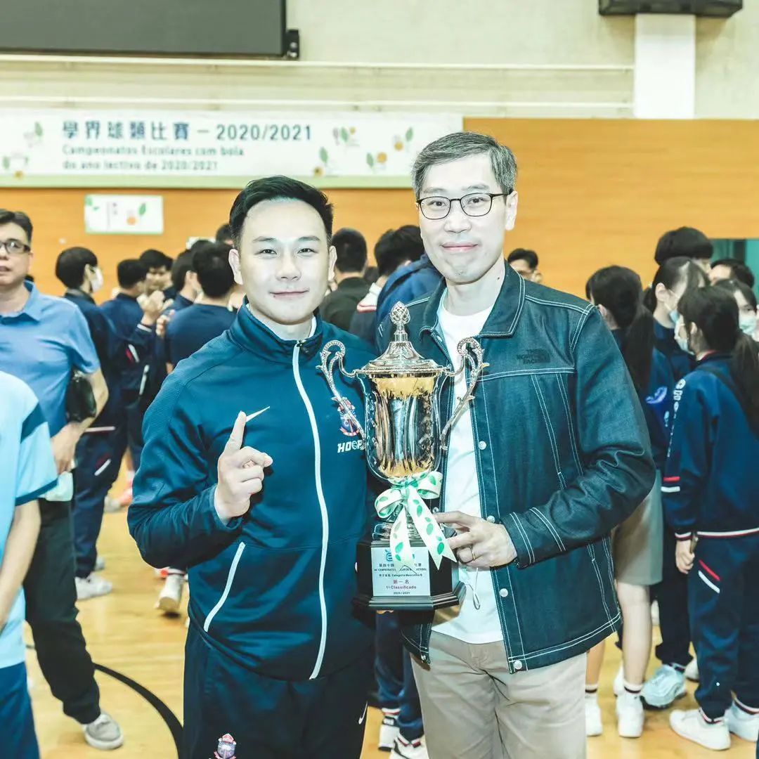 黄志荣,暨南大学体育学院体育教育专业2013届毕业生,现任澳门蔡高中学体育老师,兼任篮球队教练。黄志荣接手校篮球队时,球队只有A组(16-19岁),凭借其专业素质和数年的经营培训,目前球队已经发展为A、B、C、D四个组别,形成了固有阶队(10-18岁)。蔡高中学在2017年、2018年分别获得了学界男子篮球B组亚军、季军,在黄志荣主教练的带领下今年如愿获得冠军奖杯。