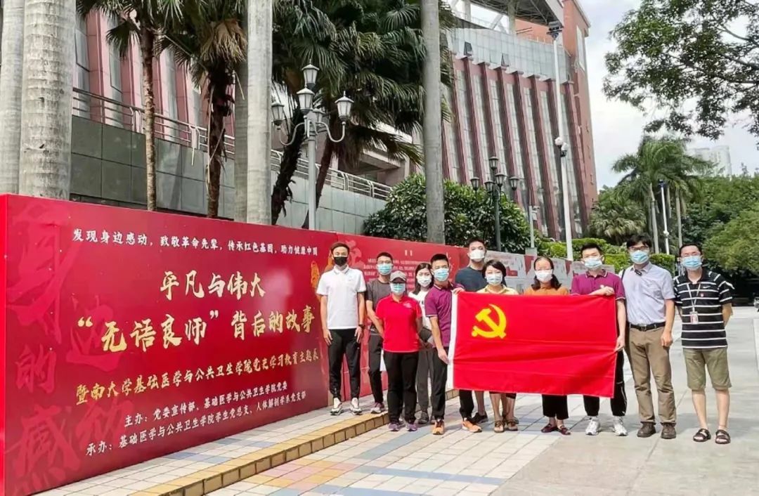 此次红色教育主题展是以老党员的遗体捐献为主线,通过详实的图文讲述了16位“无语良师”与暨南大学背后感人的红色故事。这些“无语良师”中的大部分人都曾加入过如东江纵队等革命队伍,在战火纷飞的年代为国为民而战斗。新中国成立后,他们则在各自的工作岗位上尽忠职守,无私奉献。在生命走向尽头的时刻,他们又不约而同选择将遗体捐献给暨南大学,用于医学教学和科学研究。在基础医学与公共卫生学院学生党支部书记罗超华老师的细致讲解下,我院师生了解了革命前辈们的光辉事迹,他们为了革命事业,坚定理想信念,英勇无畏、不怕牺牲的伟大精神,深深打动着每一位参观者,再一次接受了心灵的洗礼,进一步坚定了自身的理性信念和历史责任感。学院党总支马洁书记动情地感慨,抛开世俗的观念,将自己的遗体捐献出来,为国家的医疗事业做贡献,这是只有真正的无产阶级革命者,中国共产党党员才能做到的。