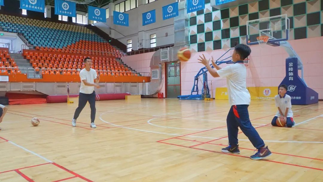 5月26日,第三次研学活动在邵逸夫体育馆室内篮球馆开展,本次研学课程由李文灿、丁伟锐主讲篮球基本技术。课程伊始,李文灿老师带领全体同学进行了短暂的热身运动,并练习原地拍球、行进运球。随后,15名同学分为两组,在两位老师的指导下依次进行原地投篮、三步上篮等投篮技巧练习以及传球练习。活动最后,我院副院长潘冬教授为同学们颁发了“优秀学生干部”及“优秀营员”荣誉证书。
