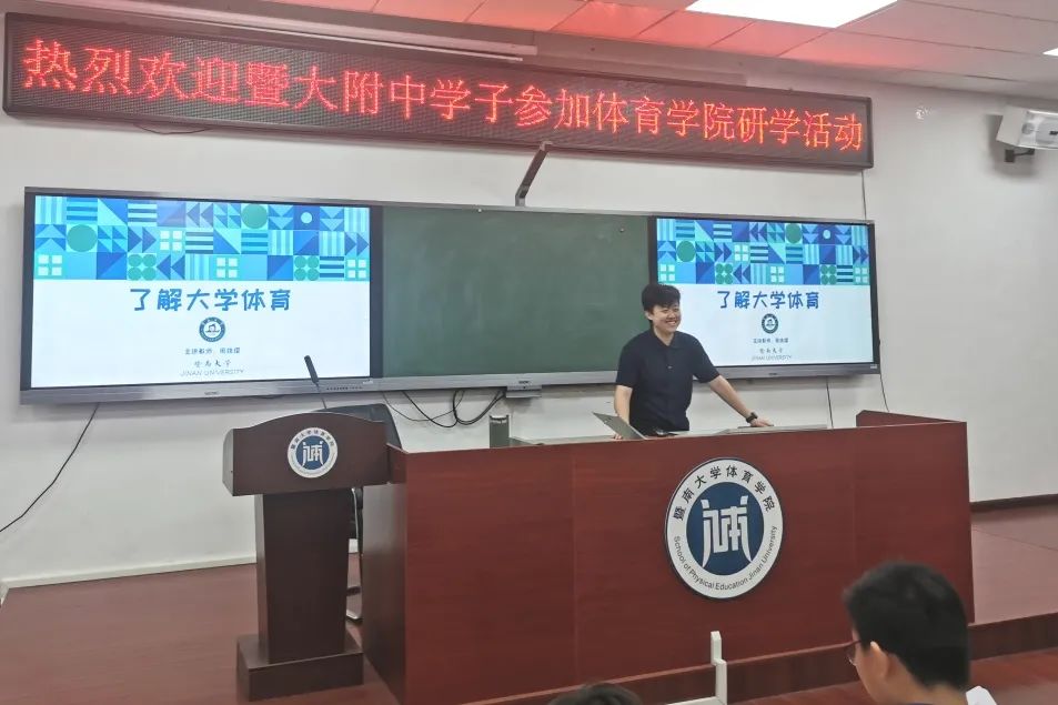 3月31日,第一次研学活动由我院周姝熠老师主讲。开讲前,周老师代表学院为附中学子赠送院徽及体育学院宣传画册作为开营礼物。随后,周老师围绕“什么是体育学”这一问题,为同学们简要介绍了体育学的内涵与兴起,以及“体育基础学科”“运动技术学科”“体育社会学科”三大门类的主干课程。此外,周老师利用丰富的图片及视频素材,详细介绍了暨南大学体育发展的厚重历史,用暨南体育精神感召同学们积极参与体育运动,培养终身运动意识。
