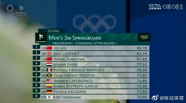 东京奥运会男子3米跳板跳水预赛中