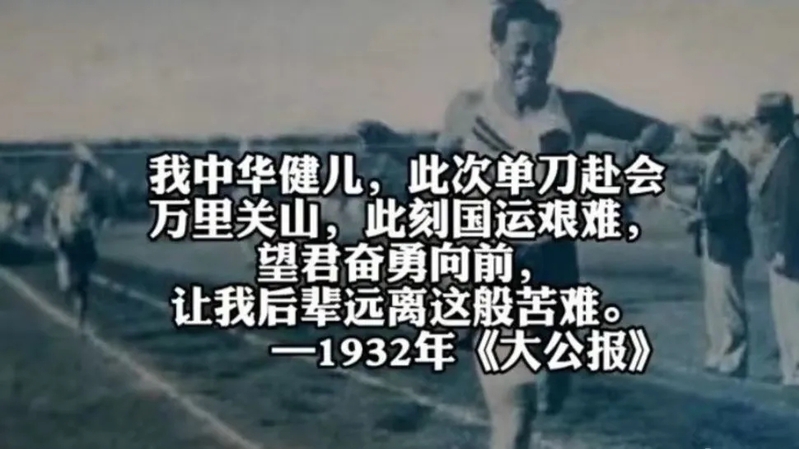 刘长春代表奥运中国在奥运100米比赛中亮相